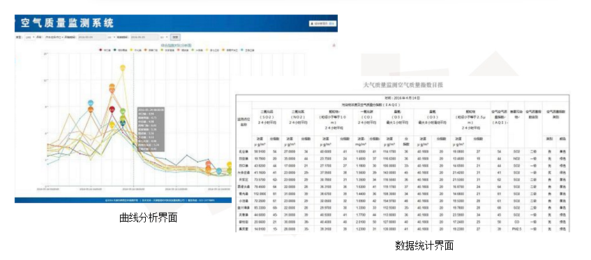 5)基础统计分析,提供单点、多点历史数据对比分析、区域污染现状分析、多点空气质量排序等基础数据分析功能